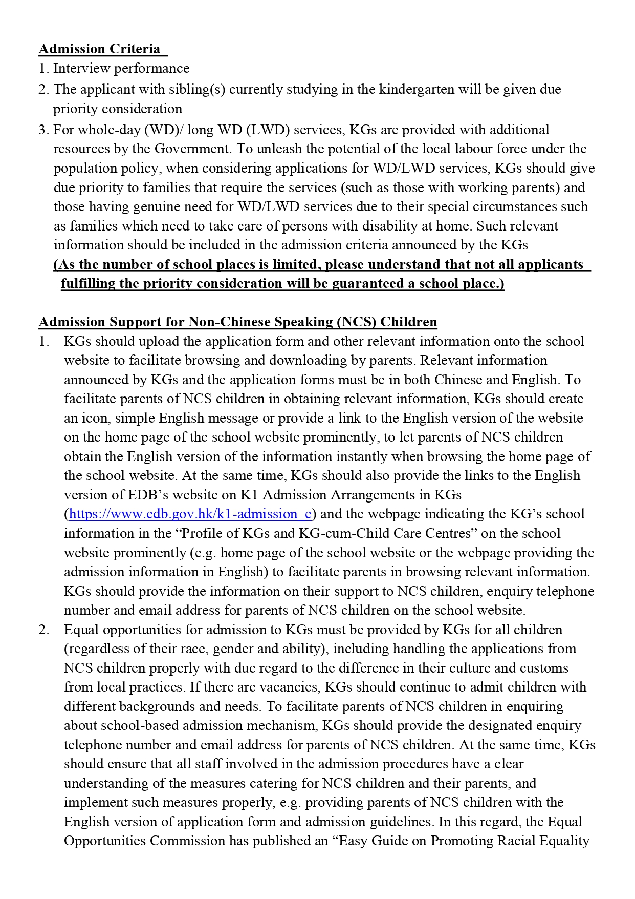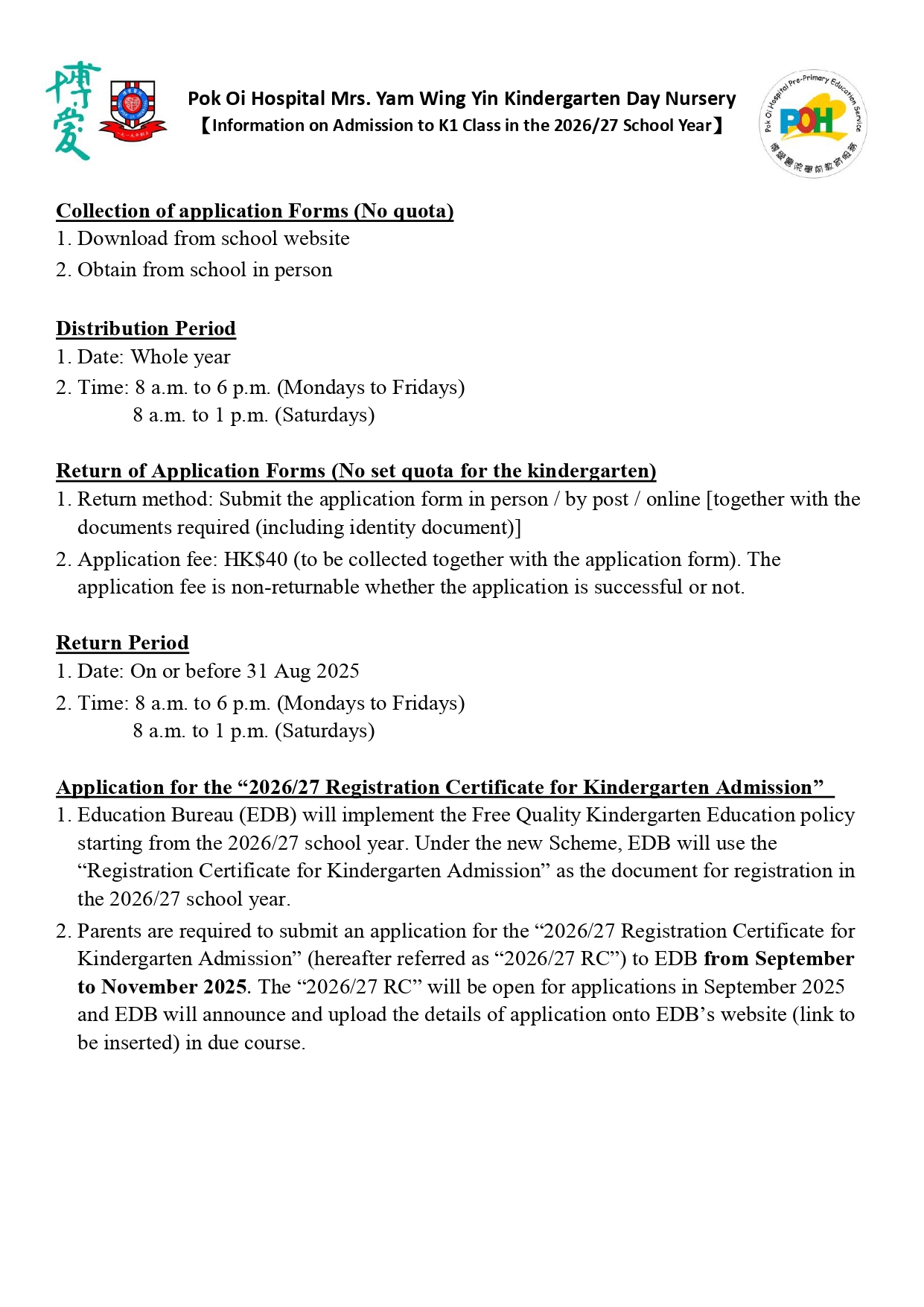 Information on Admission to K1 Class in the 2026/2027 School Year(Chinese)